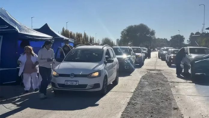 En una acción conjunta sin precedentes, autoridades sanitarias de Neuquén y Río Negro vacunaron a personas a bordo de sus autos, sobre la ruta