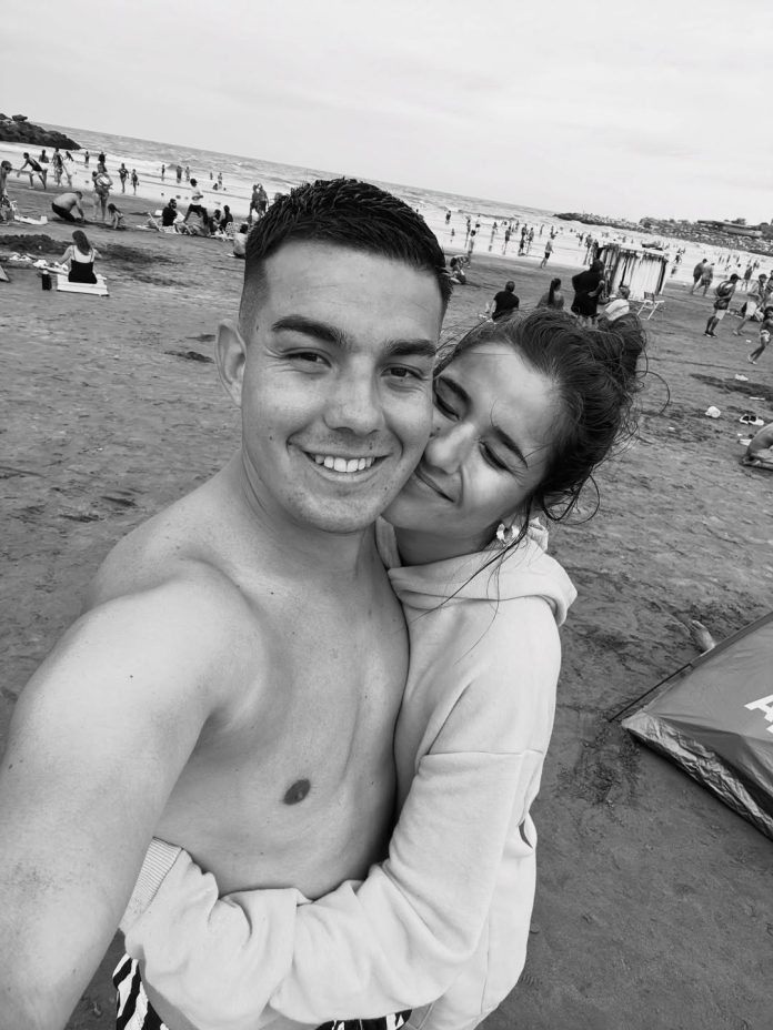 El árbitro de fútbol Emanuel Leguizamón y su pareja Micaela Palavecino durante sus vacaciones. El referí de 24 años murió en un accidente tránsito tras dirigir un partido en Santa Cruz (Instagram: micaelapalavecinoa)