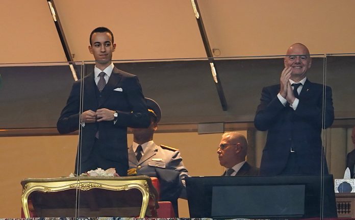 El Príncipe de Marruecos, Moulay Hassan, en el palco de honor del estadio de Rabat con Gianni Infantino, presidente de la FIFA, en el inicio de la Copa de África (REUTERS/Stringer)
