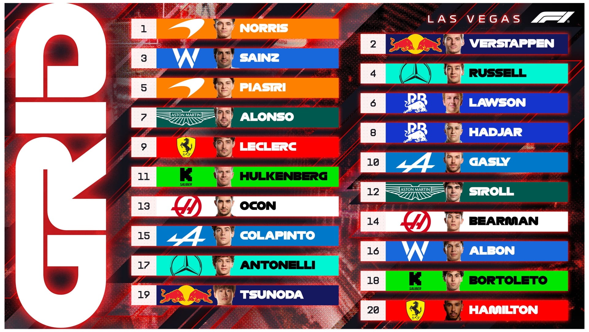 Con Lando Norris en la pole, así quedó la grilla de largada para la carrera del domingo en el GP de Las Vegas (Foto: @F1)