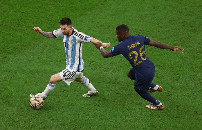 Marcus Thuram marca a Messi en la final de Qatar 2022, considerada por muchos como la mejor de la historia de los Mundiales (REUTERS/Paul Childs)
