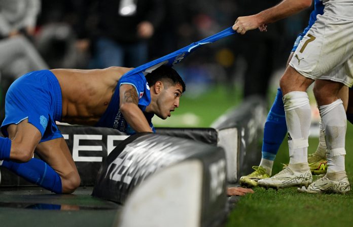 Palacios terminó sin remera tras el cruce con su rival (Reuters)