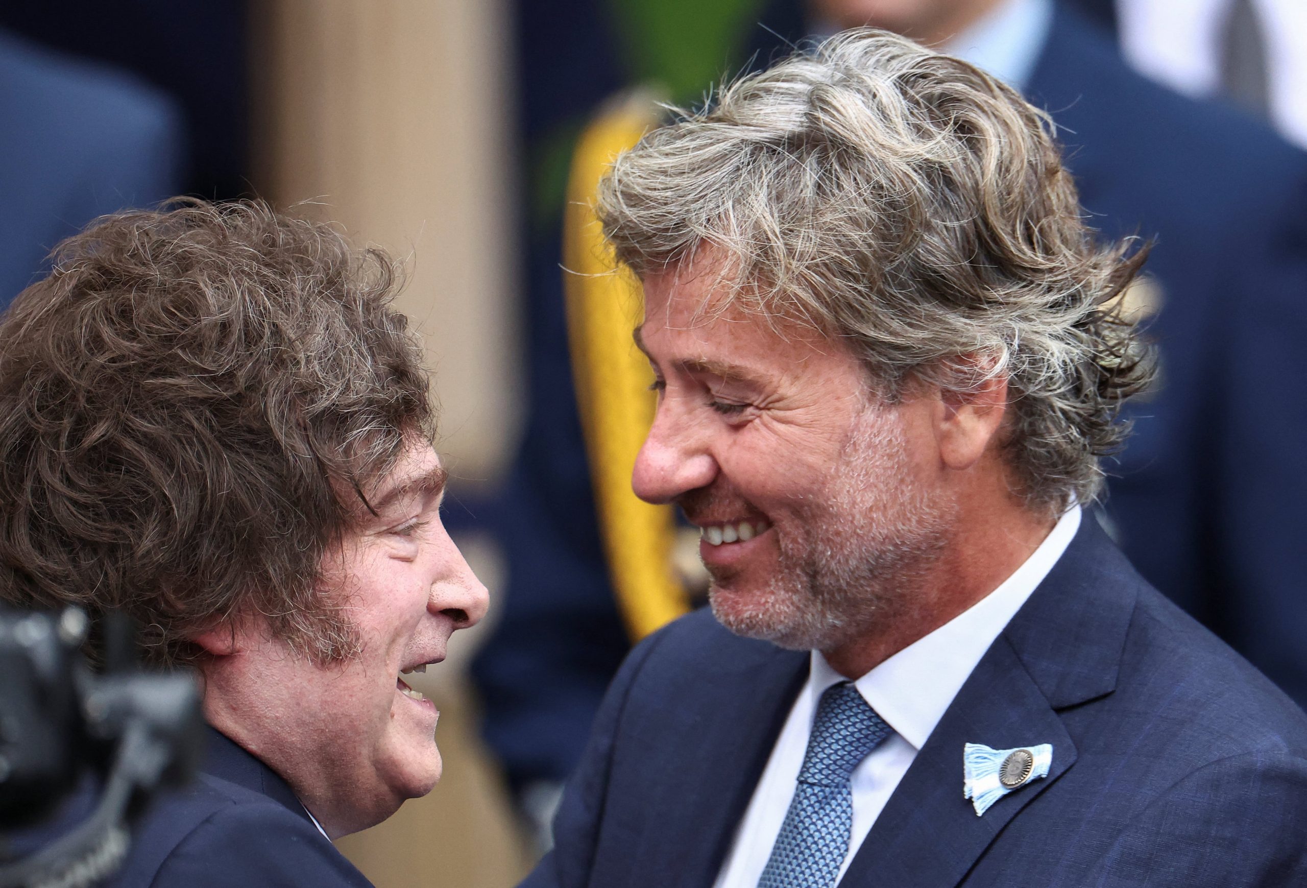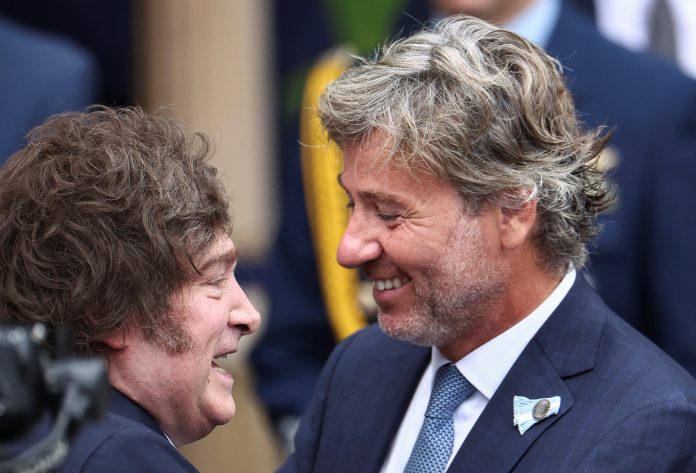 El presidente Javier Milei sonríe con el ministro de Justicia, Juan Bautista Mahiques (Foto: Reuters / Agustin Marcarian)