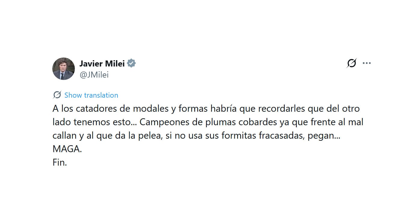 El tuit de Javier Milei tras los incidentes: “Del otro lado tenemos esto”