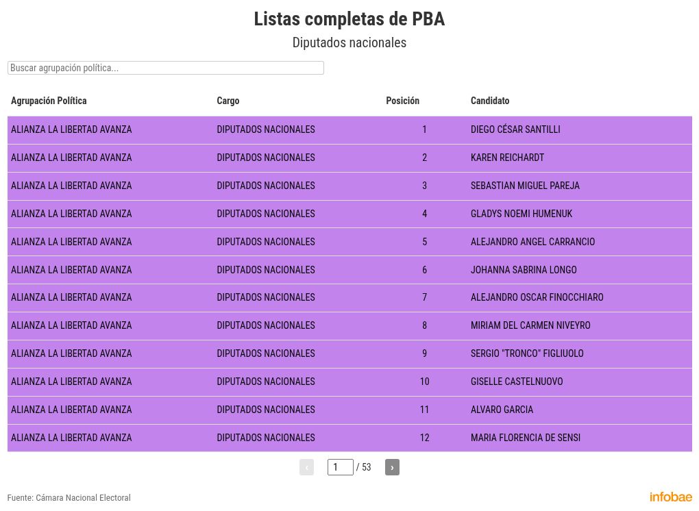 En la Alianza La Libertad Avanza, Diego Santilli encabezará la boleta, tras la renuncia de José Luis Espert. Le siguen la ex actriz y conductora de TV Karen Reichardt y el armador bonaerense Sebastián Pareja que estaba en el quinto lugar y tras los cambios quedó tercero.