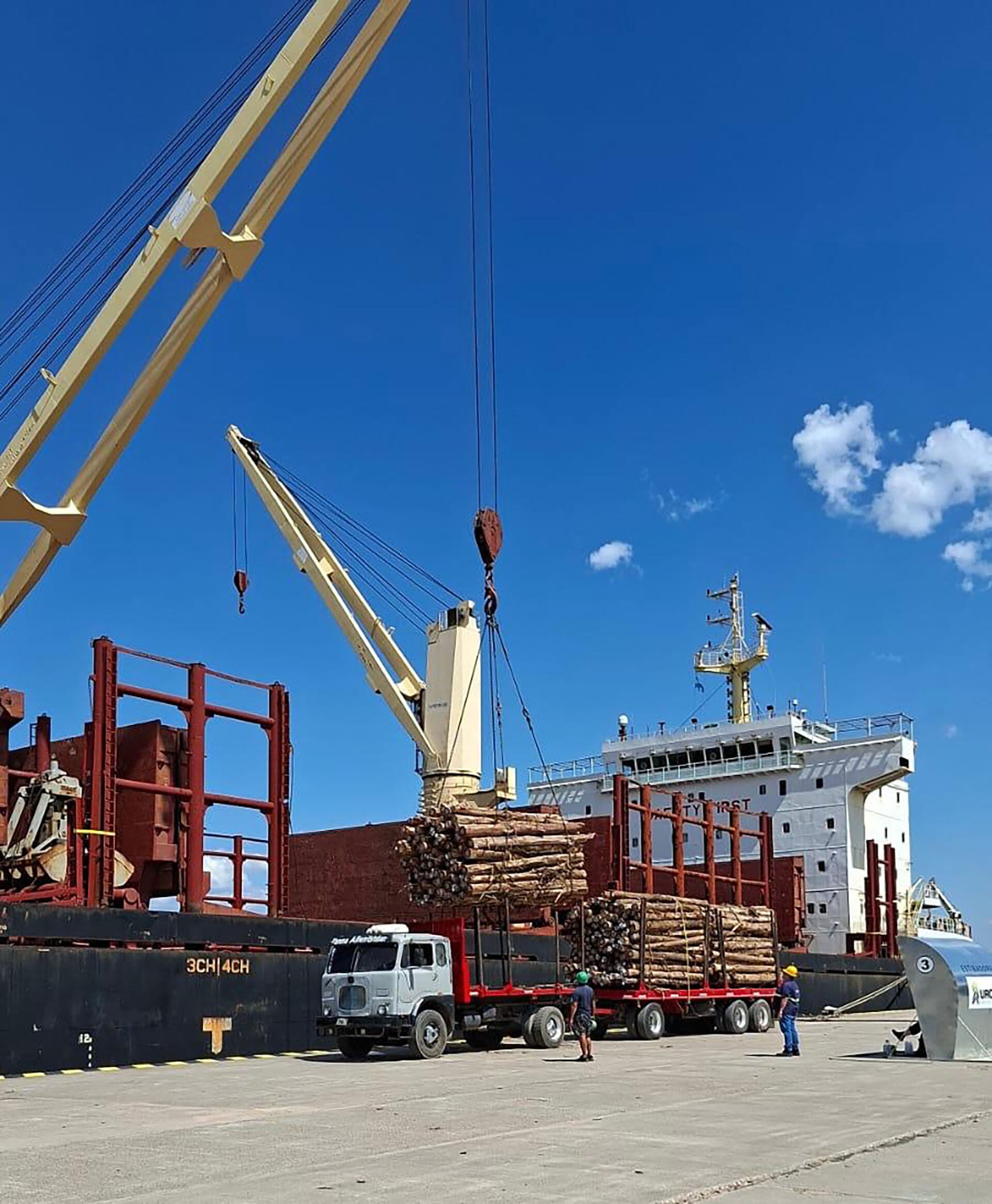 Tras el operativo policial, los camiones que transportaban troncos para exportación lograron acceder al complejo portuario. Y pudo realizarse el estibaje de las embarcaciones.