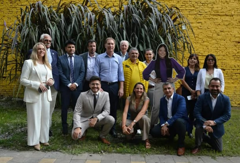 En la mitad de su paso por la capital provincial, Santilli se reunió en la denominada Casa de la Libertad junto al principal armador mileista en la provincia, el exdiputado nacional Alfredo Olmedo, y autoridades nacionales y provinciales de La Libertad Avanza.