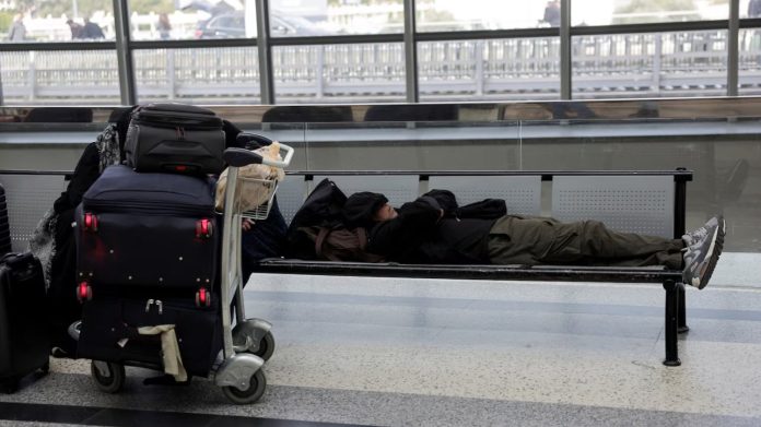 Una persona varada en un aeropuerto (Khalil Ashawi/Reuters)