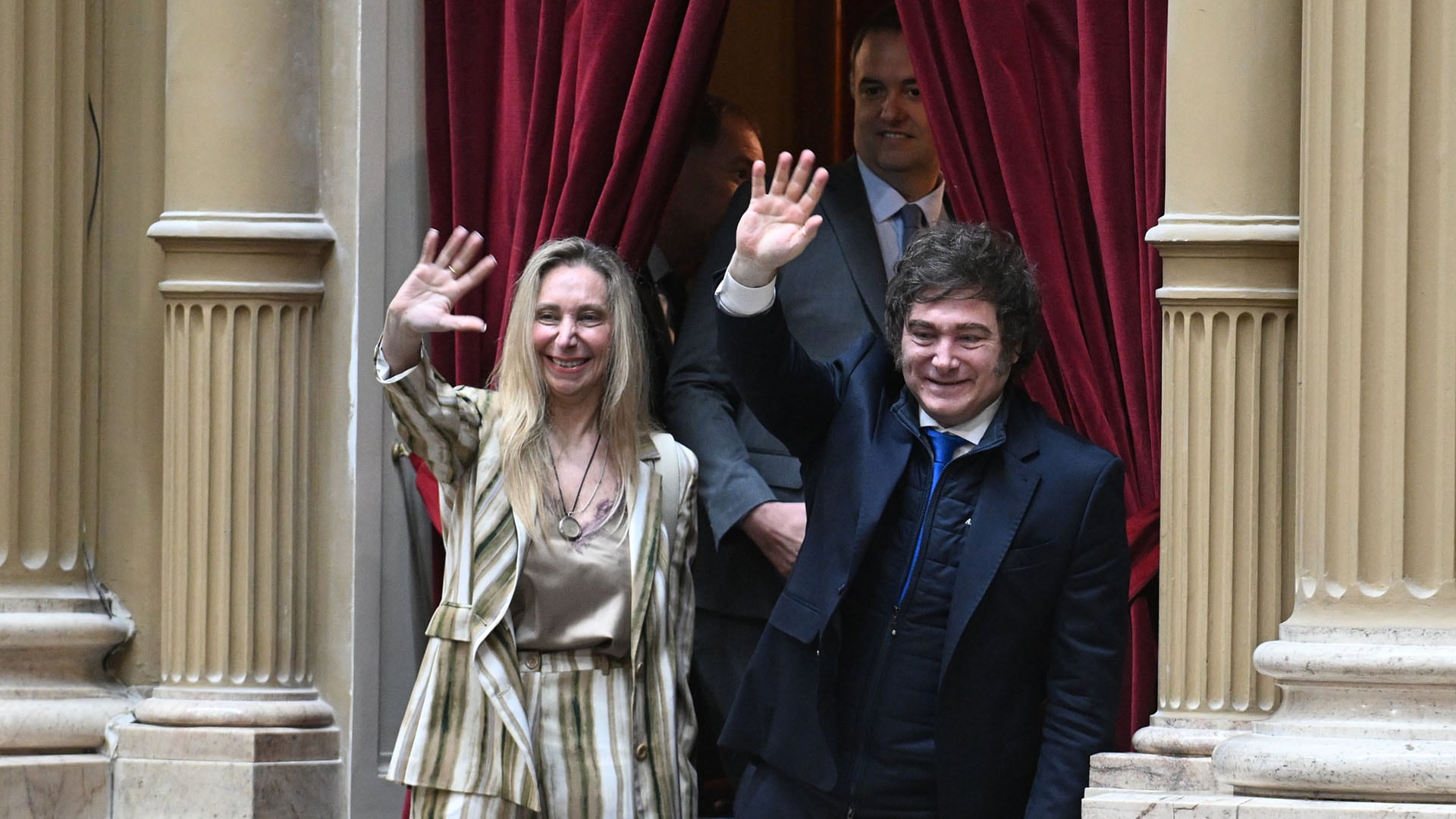 El presidente Javier Milei y la secretaria general de la Presidencia, Karina Milei, en el Congreso (Maximiliano Luna)