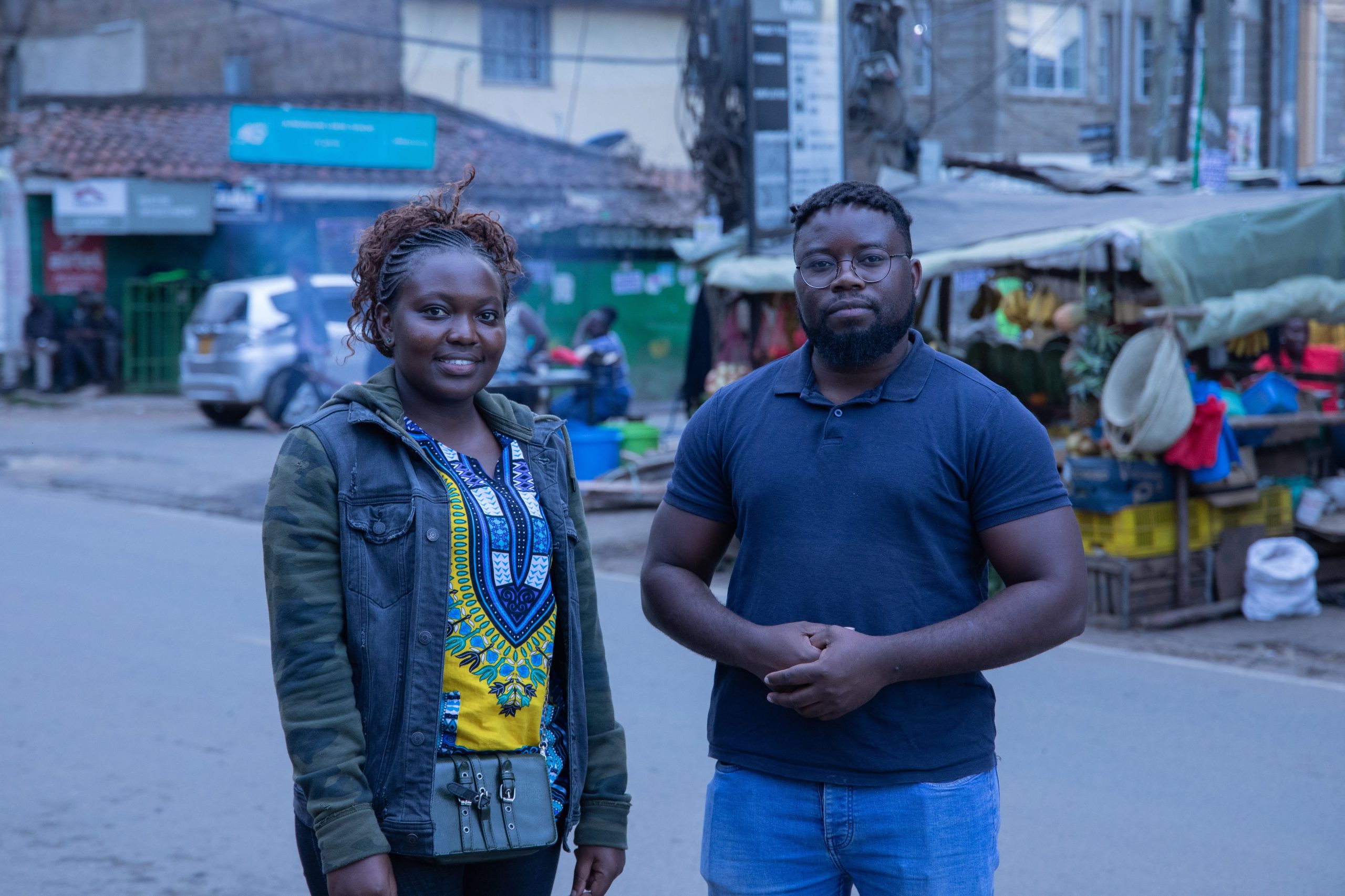 Maureen Chiveri, una trabajadora de datos, junto a un miembro del equipo de investigación de Milagros Miceli, el Dr. Adio Dinika